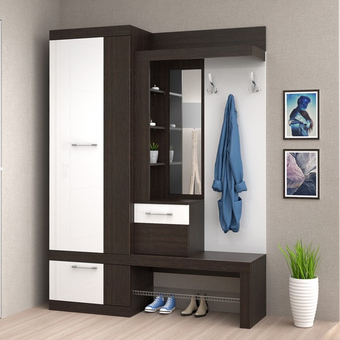Прихожая «Дуэт», 1500×380×2000 мм, цвет дуб венге/белый глянец