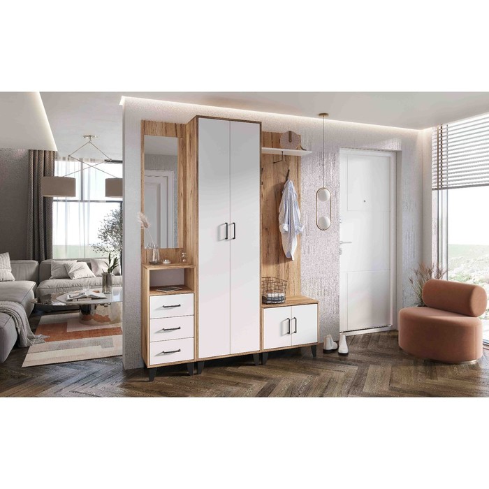 Прихожая «Бери», 800×350×1826 мм, цвет дуб крафт золотой/белое дерево