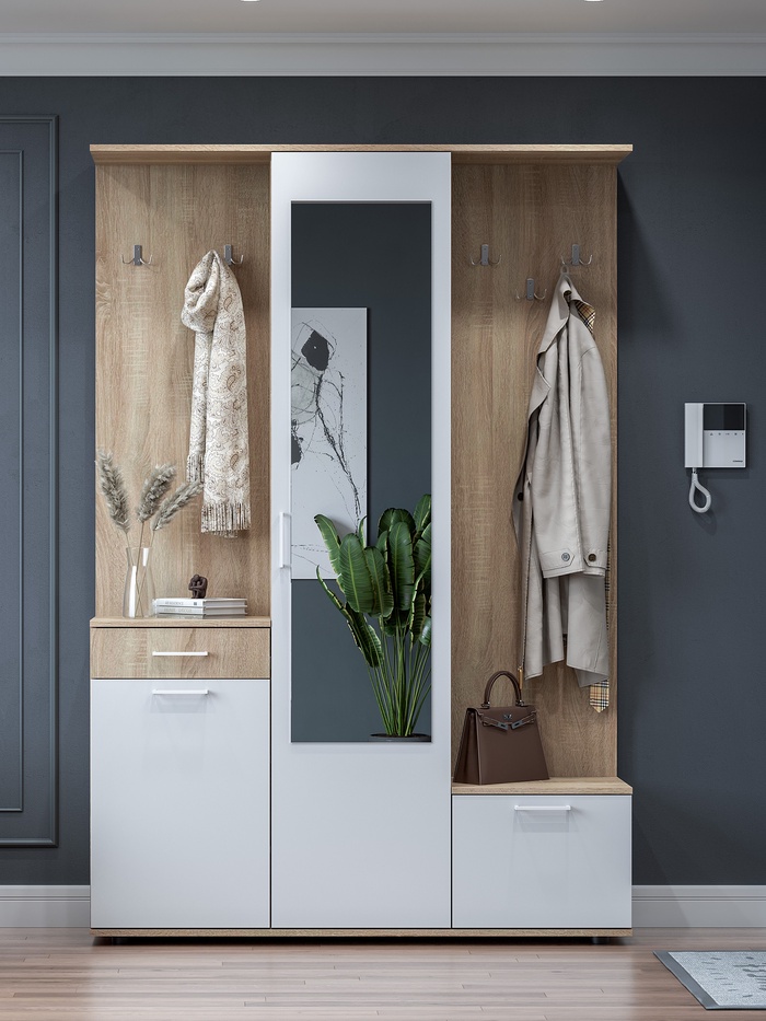 Прихожая «ПР1», 1350×330×1990 мм, цвет дуб сонома/белый