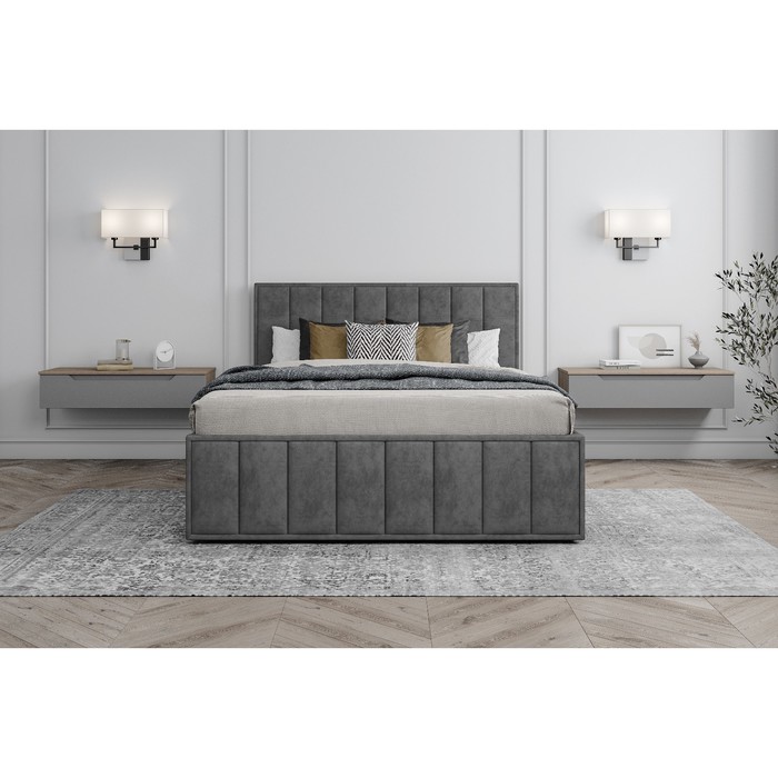 Кровать двуспальная «Лана», с мягким изголовьем, с подъёмным механизмом, 1600×2000 мм, велюр, цвет графит