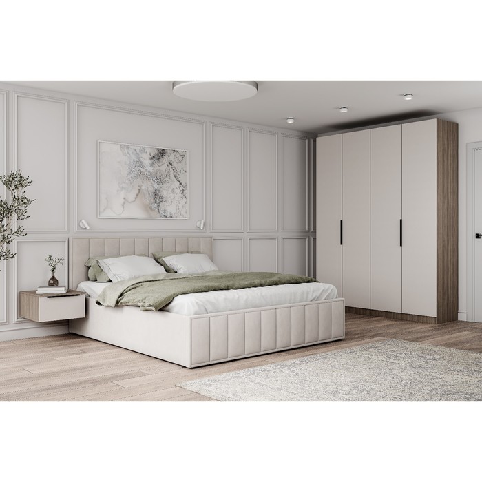 Кровать двуспальная «Лана», с мягким изголовьем, с подъёмным механизмом, 1600×2000 мм, велюр, цвет бежевый