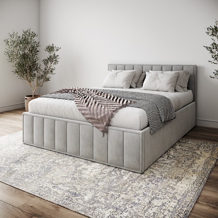 Кровать двуспальная «Лана», с мягким изголовьем, с подъёмным механизмом, 1600×2000 мм, велюр, цвет серый