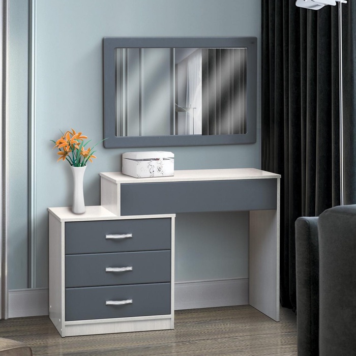 Стол туалетный «Венеция 6», 3 ящика, зеркало, ясень анкор светлый / ясень гриджио матовый