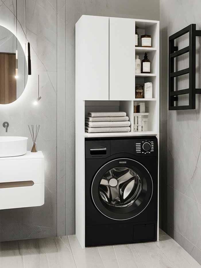 Стеллаж напольный «Комфорт» №1, над стиральной машиной, 673×220×1696 мм, цвет белый