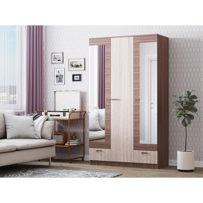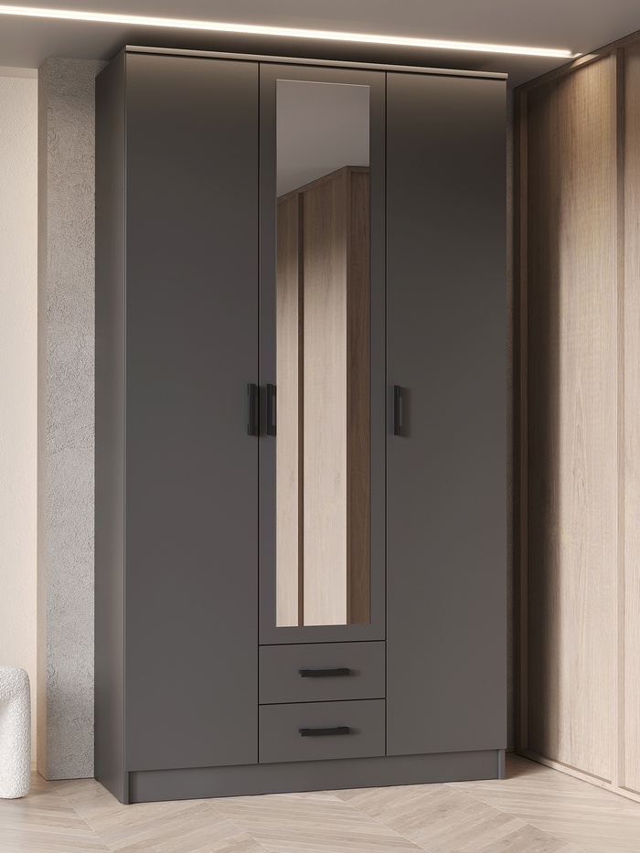 Шкаф прямой трёхстворчатый «Трио», 2 ящика, с зеркалом, 1200×482×2200 мм, цвет графит