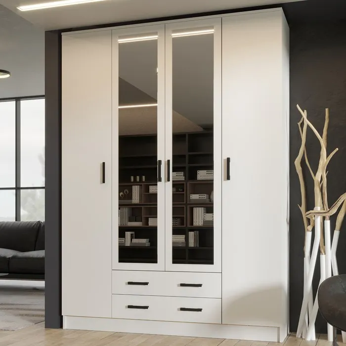 Шкаф четырехстворчатый «Квадро», 1600×487×2200 мм, цвет белый