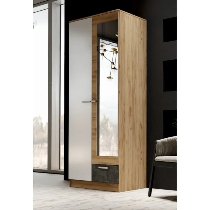 Шкаф двухстворчатый Денвер, 800х380х2150, Дуб сонома/Белый