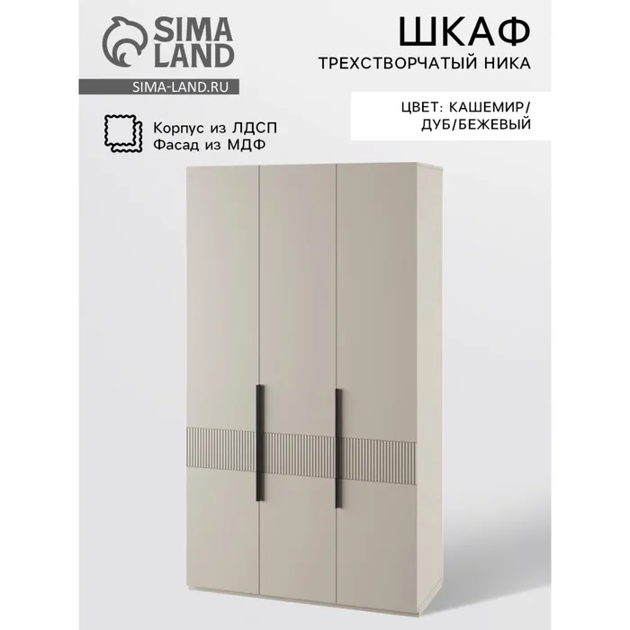 Шкаф трехстворчатый «Ника», 1350×500×2100 мм, МДФ, цвет кашемир/дуб/бежевый