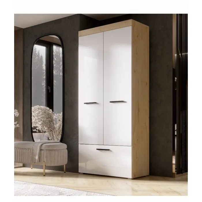 Шкаф БАСТОН Дуб Вотан/Белый глянец 902х2000х400