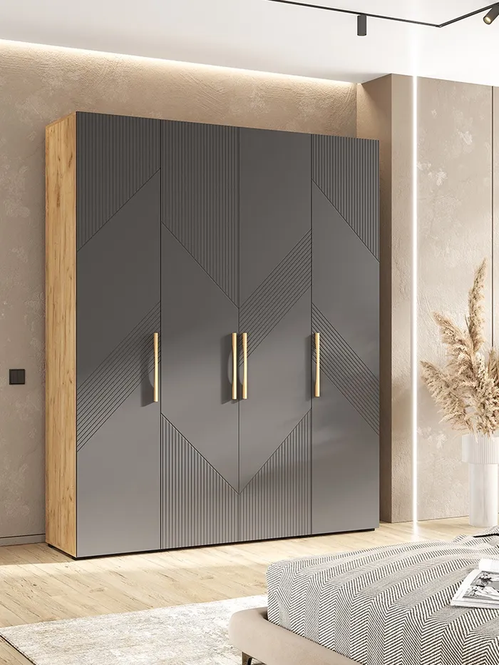 Шкаф четырехстворчатый «Ирис», 1800×506×2236 мм, цвет браш графит МДФ/дуб крафт