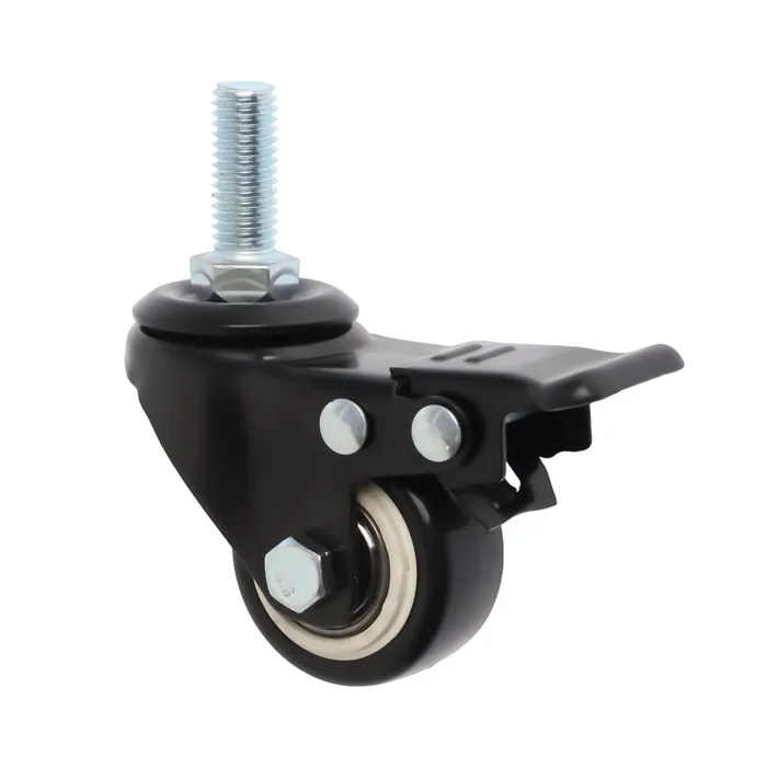 Колесо мебельное ТУНДРА, d=40 мм, поворотное, с футоркой 10×25 мм, с тормозом, черное
