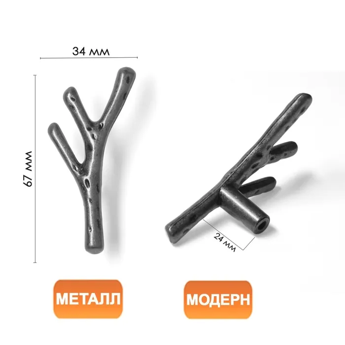 Ручка-кнопка CAPPIO "Ветка", цвет старинное серебро
