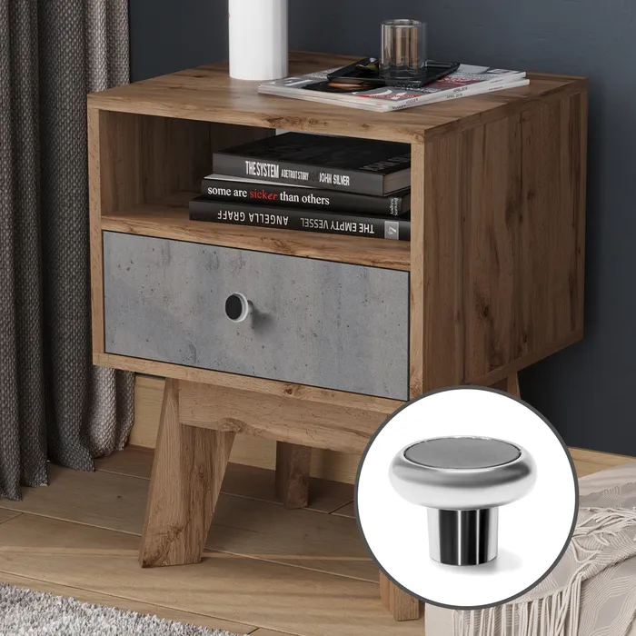 Ручка-кнопка ТУНДРА РК101, цвет хром с черной вставкой