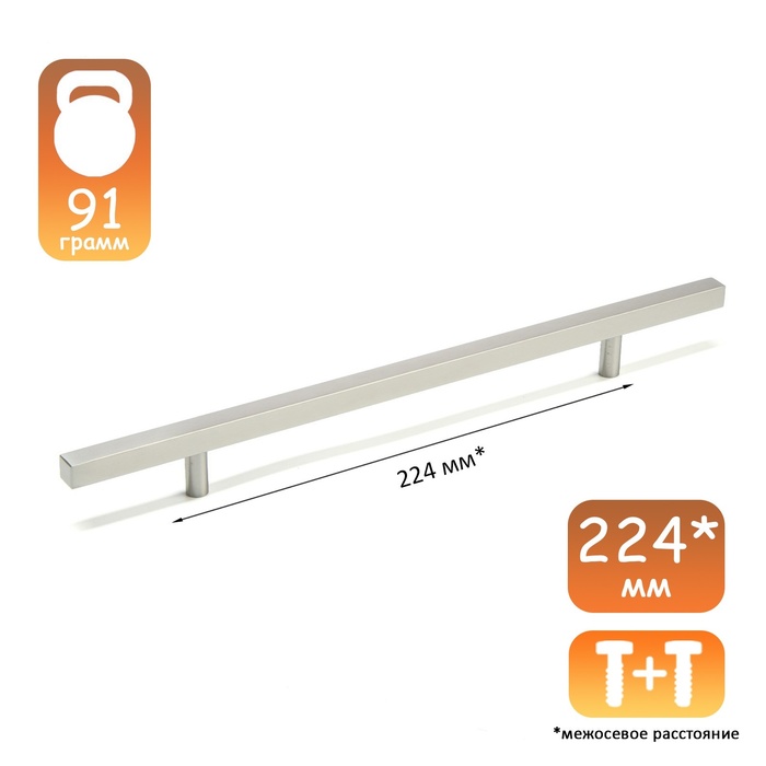 Ручка-рейлинг квадрат CAPPIO, м/о 224 мм, L=350 мм, нержавеющая сталь