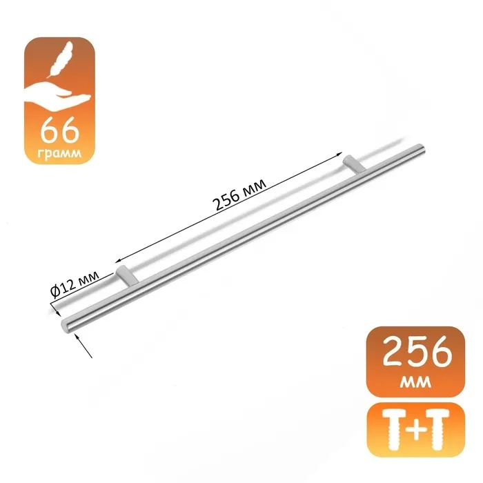 Ручка-рейлинг ТУНДРА HARLOW, пластик, d=12 мм, м/о 64 мм, цвет матовый хром, 4 шт.