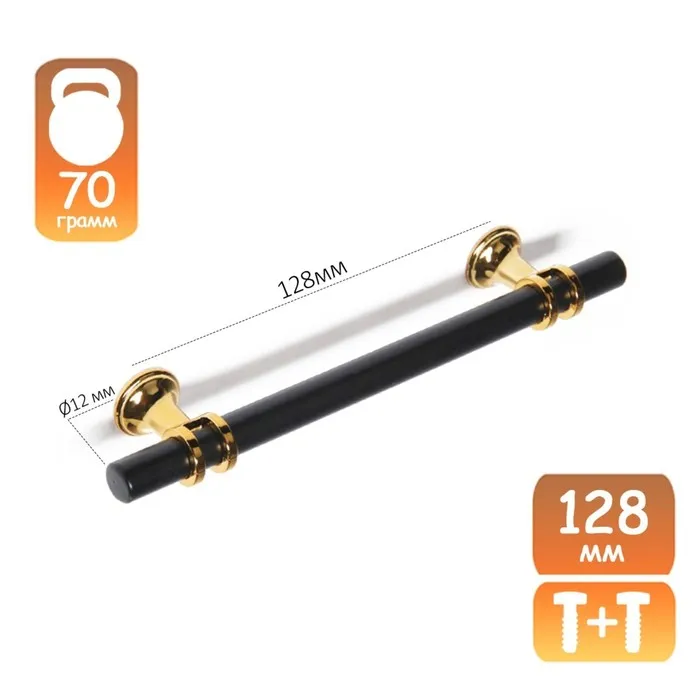 Ручка-рейлинг CAPPIO RSC003, м/о 128 мм, d=12 мм, цвет черный с золотом, 4 шт.