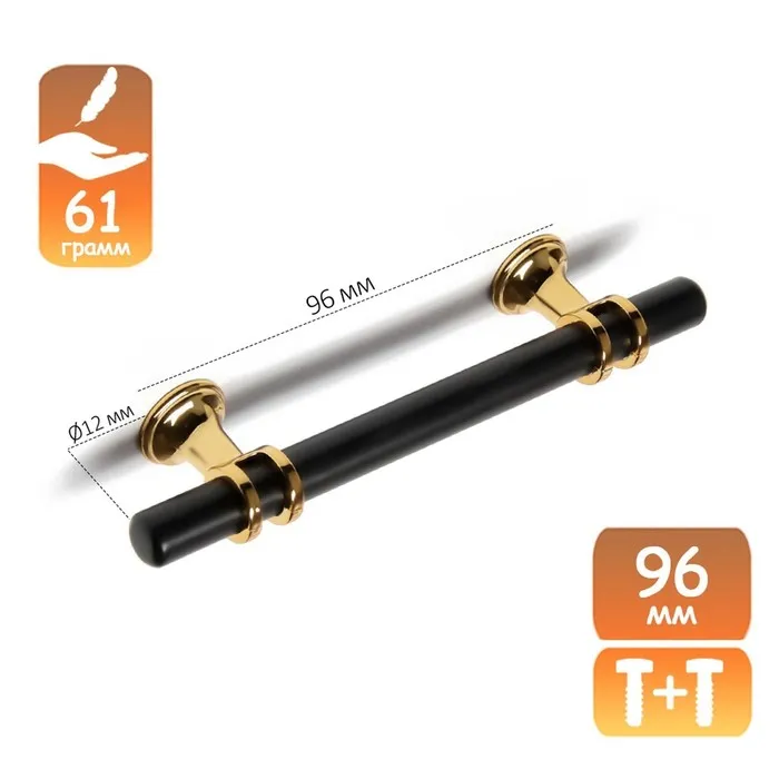 Ручка-рейлинг CAPPIO RSC003, м/о 96 мм, d=12 мм, цвет черный с золотом