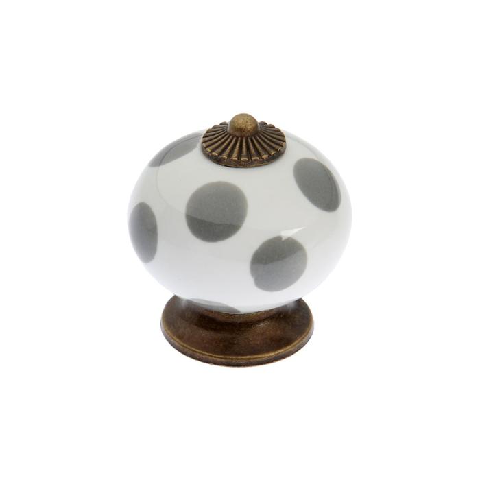 Ручка кнопка ТУНДРА, керамическая, белая, с, серая, кругами