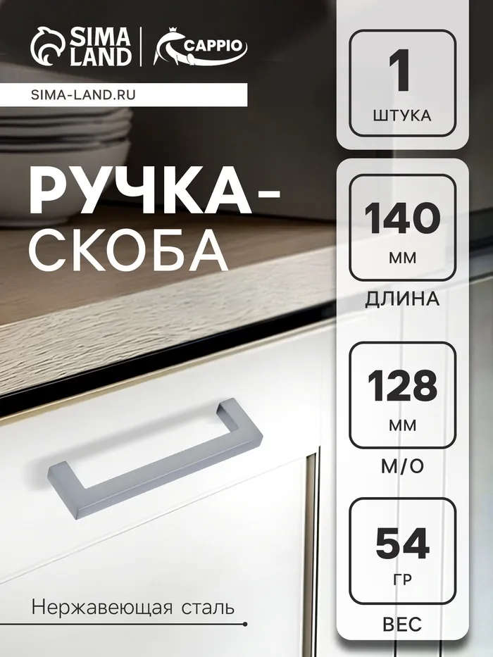Ручка-скоба CAPPIO RSC040, м/о 128 мм, цвет белый