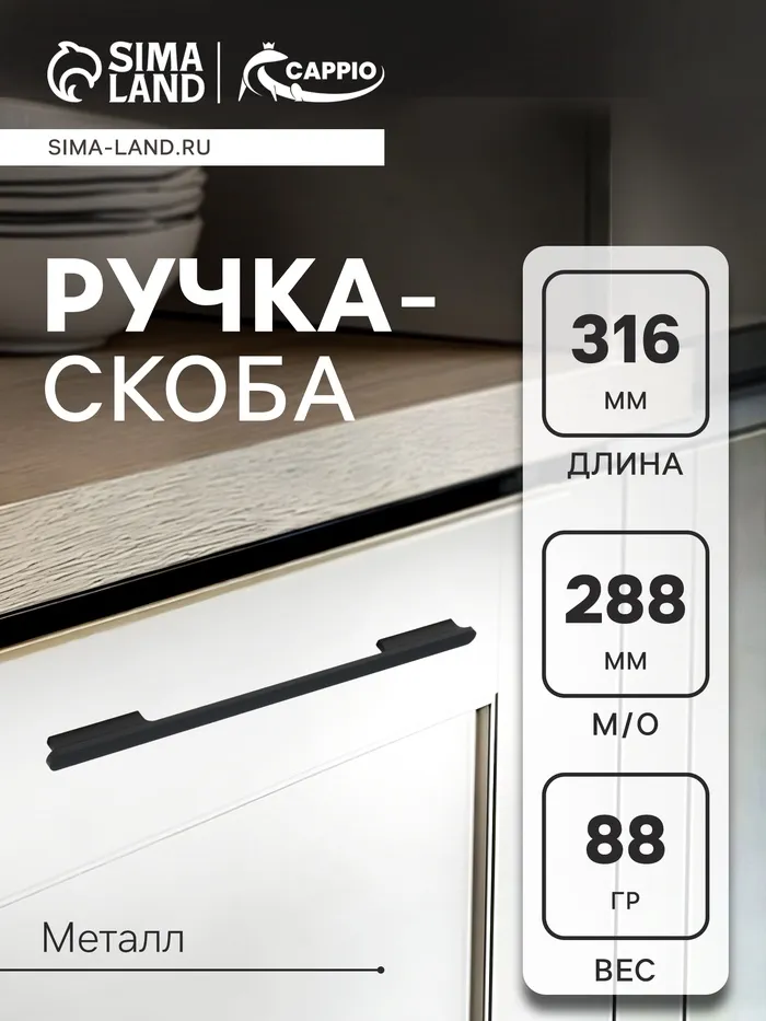 Ручка-скоба CAPPIO RS149, м/о 288 мм, цвет черный