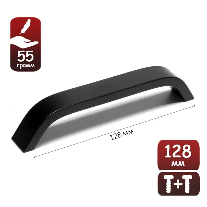 Ручка-скоба мебельная ТУНДРА РС109, м/о 128 мм, черная, 4 шт