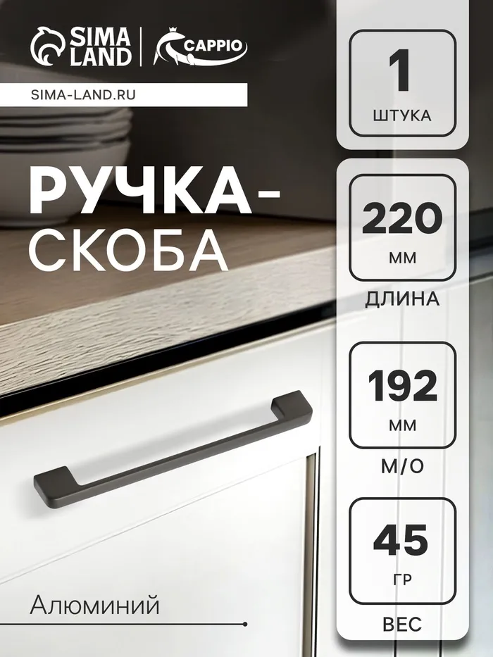 Ручка-скоба CAPPIO FREEDOM RSC005, м/о 192 мм, цвет графит
