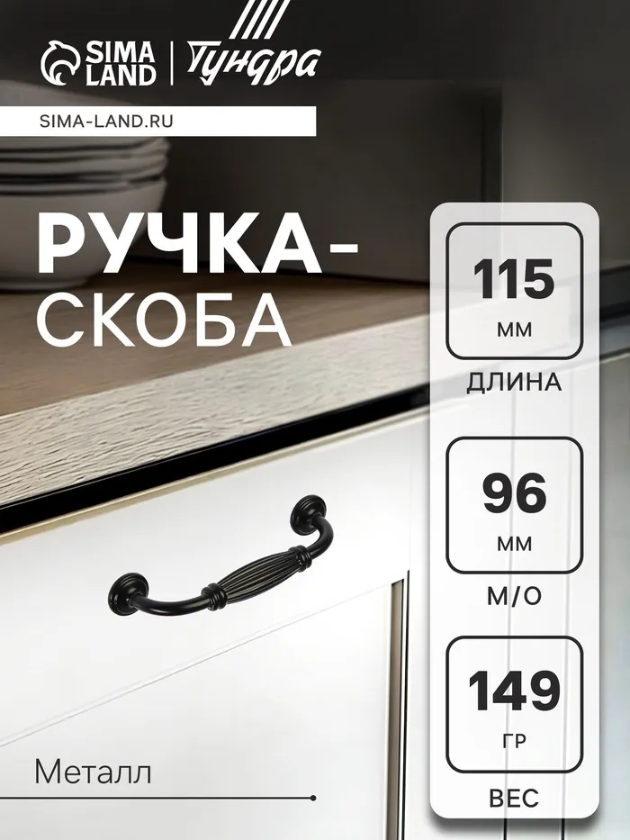 Ручка-скоба мебельная ТУНДРА PC176BL, м/о 96 мм, цвет чёрный, 4 шт