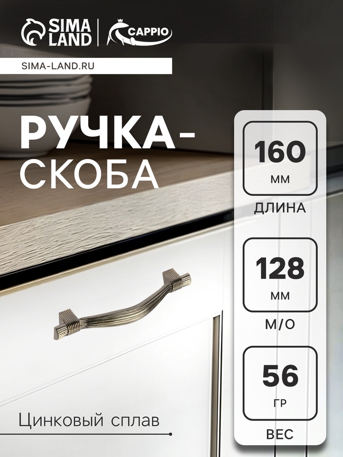 Ручка-скоба CAPPIO RSC018, цинк, м/о 128 мм, цвет бронза