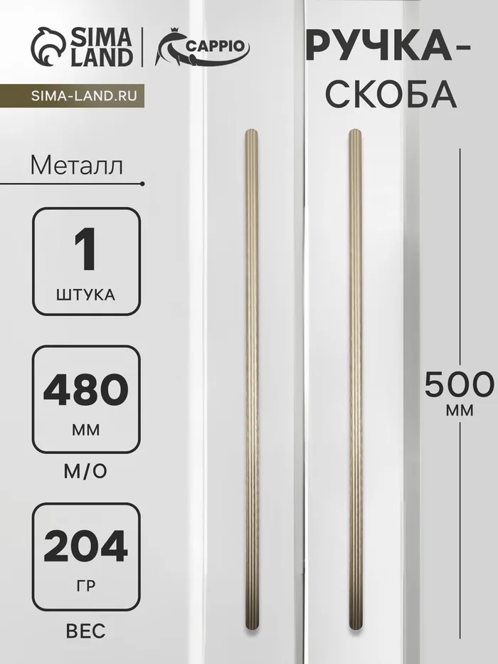 Ручка-скоба CAPPIO RSC021, алюминий, м/о 480 мм, цвет сатиновое золото