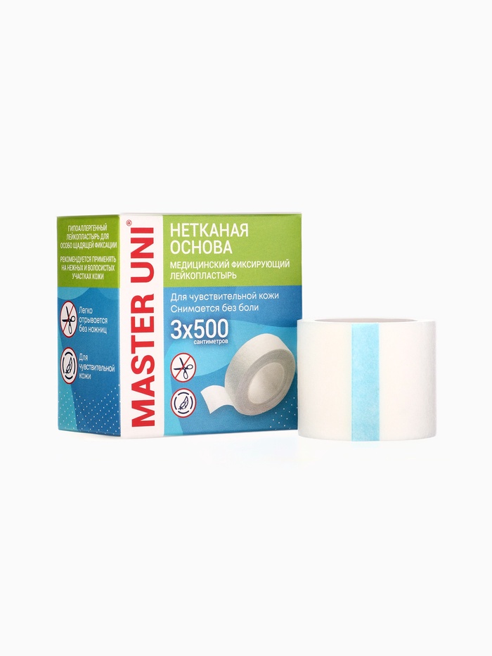 Лейкопластырь медицинский фиксирующий MASTER UNI на нетканой основе, 3×500 см