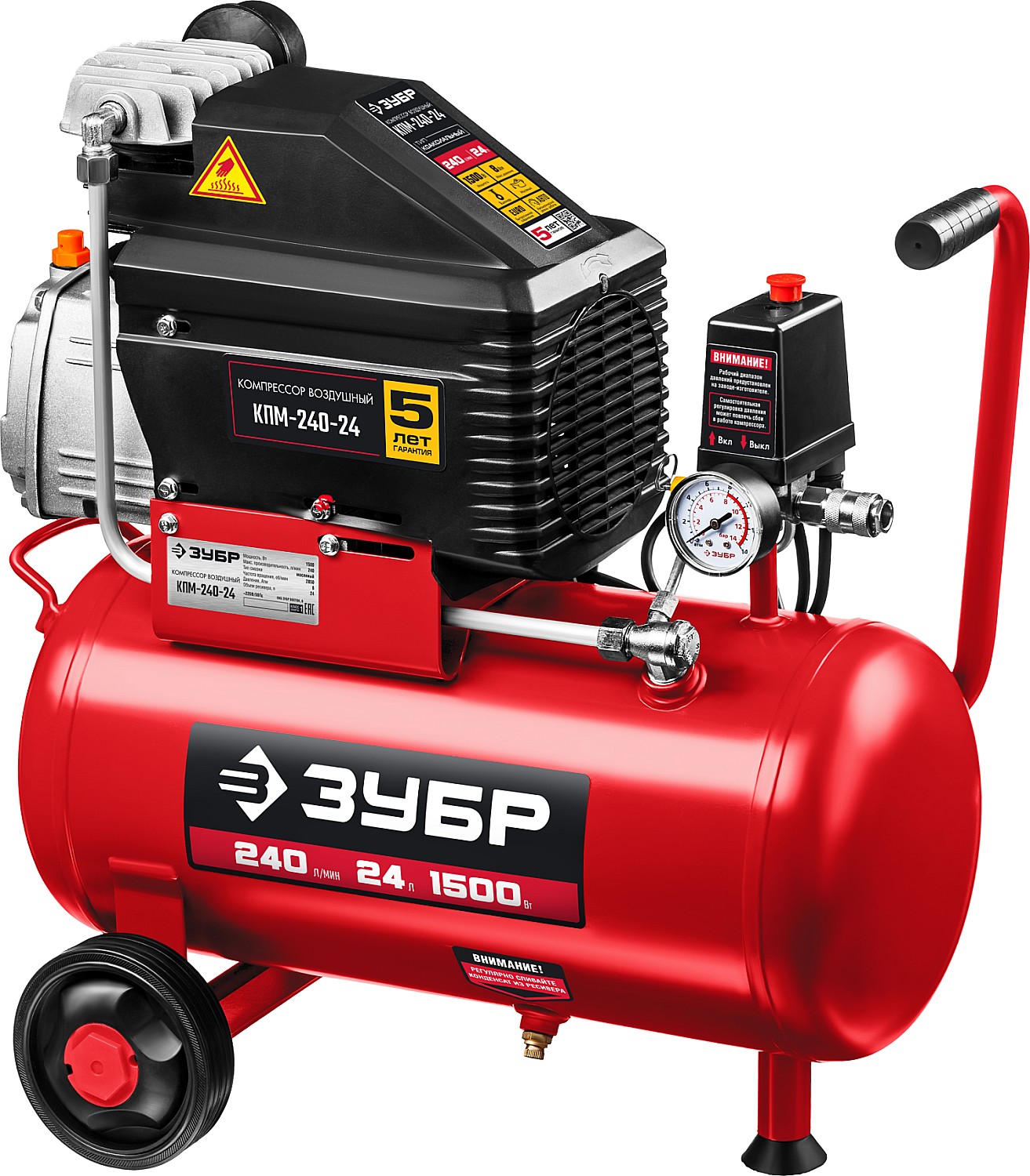 ЗУБР 240 л/мин, 24 л, 1500 Вт, масляный компрессор (КПМ-240-24)