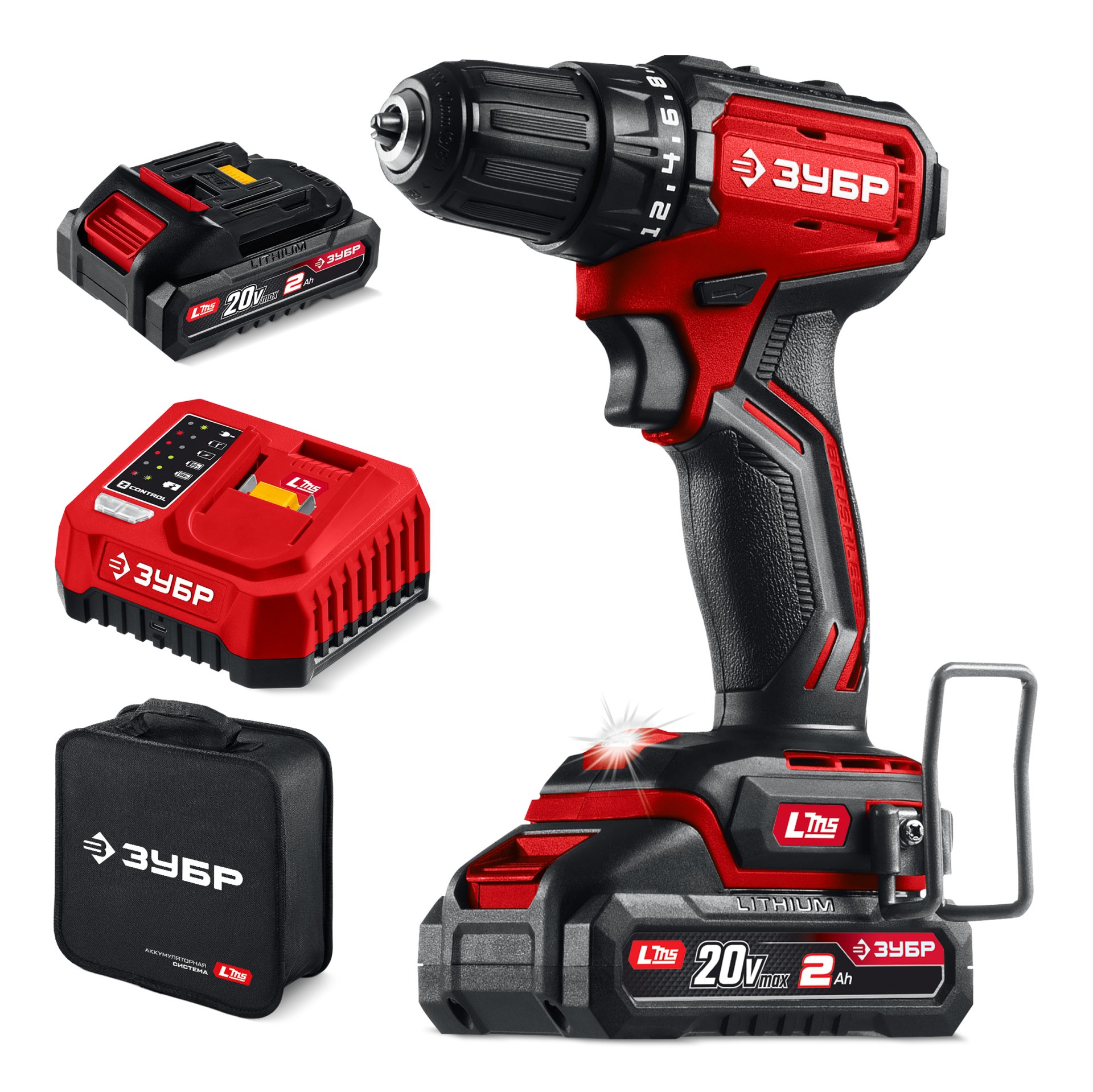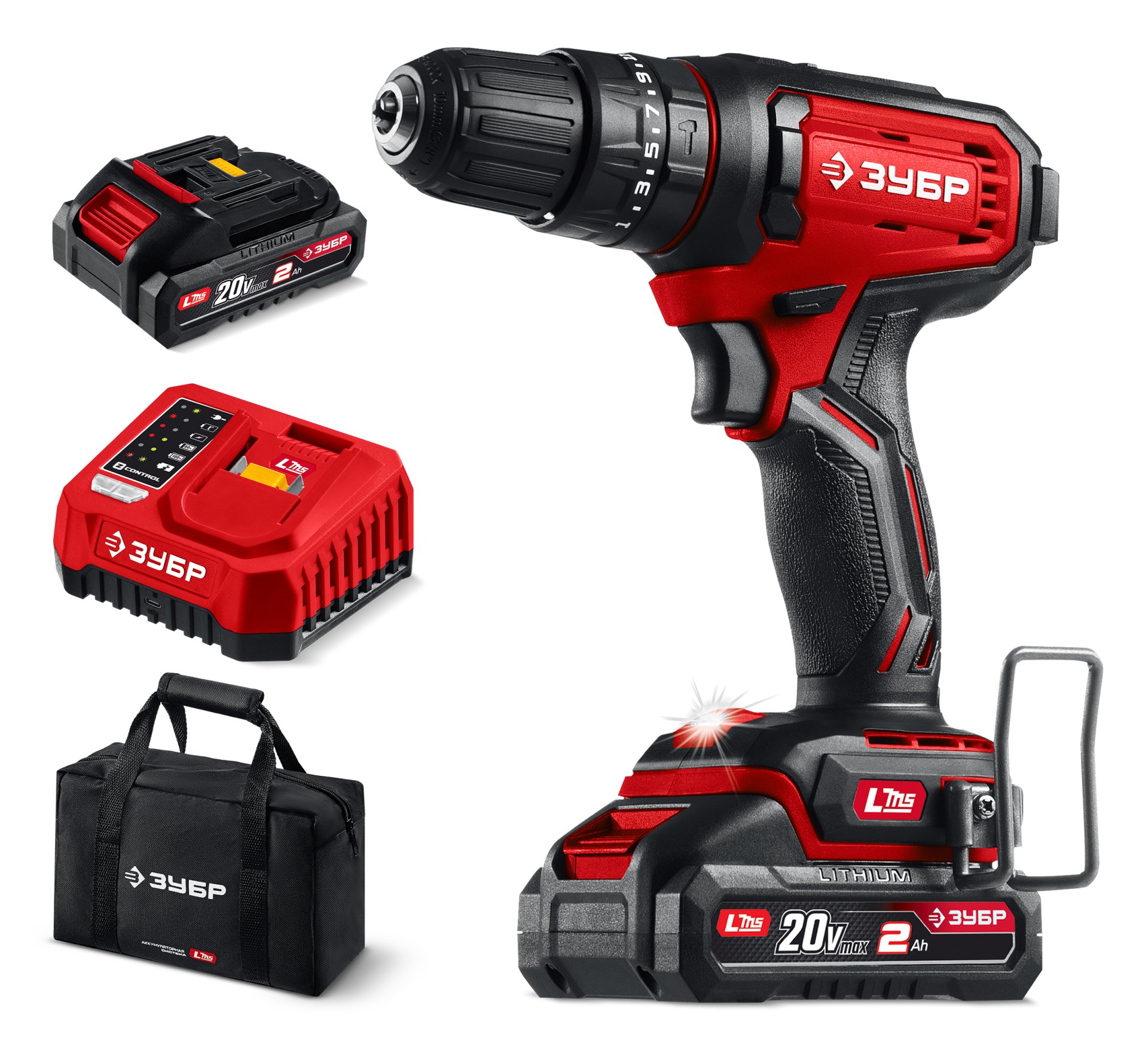 ЗУБР 20 В, 40 Н·м, 2 АКБ LMS (2 А·ч), ударная дрель-шуруповерт, сумка (ДШУ-40-22)