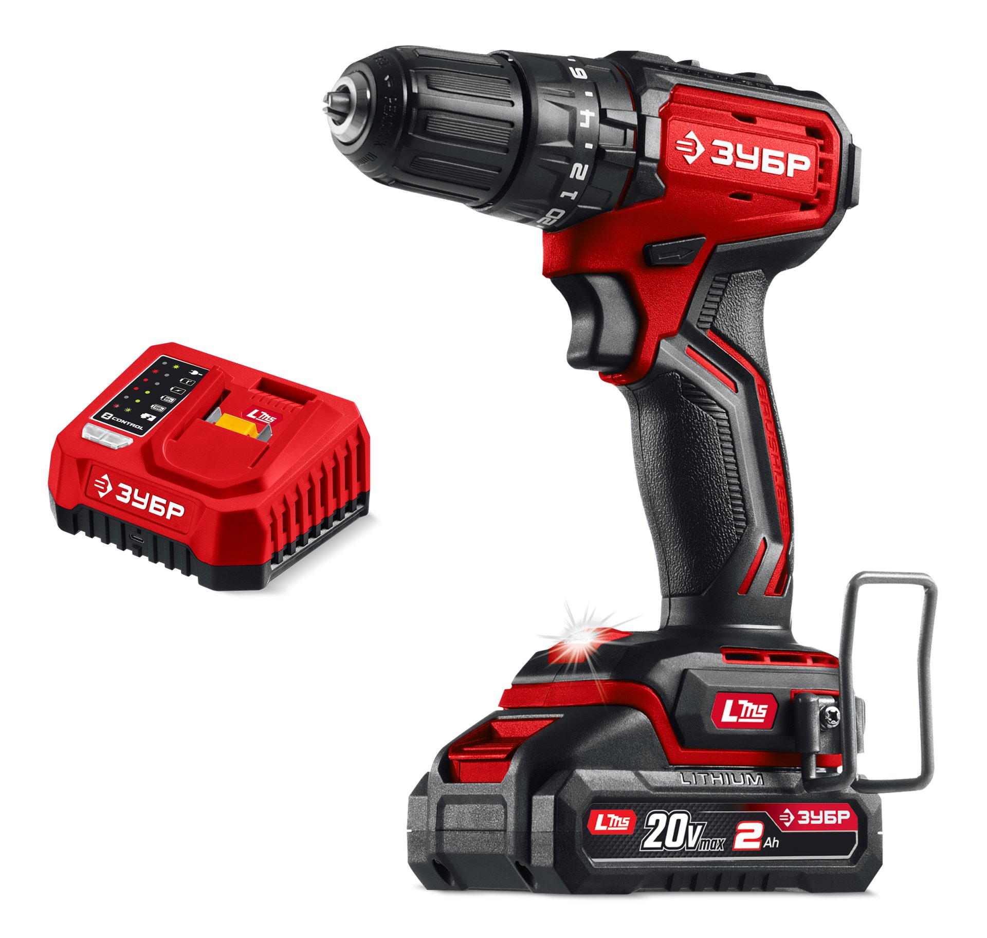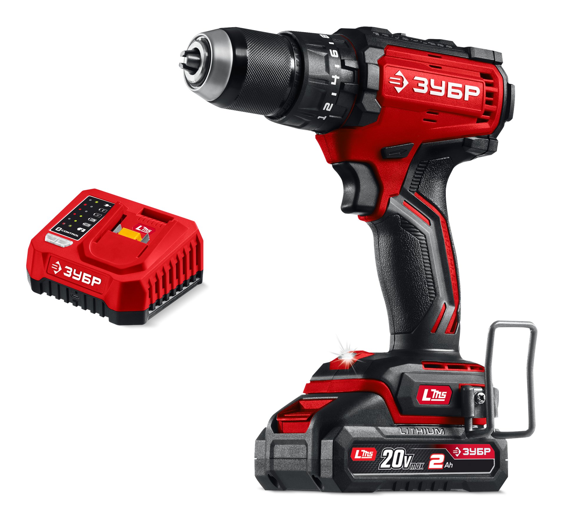 ЗУБР 20 В, 45 Н·м, 1 АКБ LMS (2 А·ч), бесщеточная ударная дрель-шуруповерт (ДБУ-45-21)