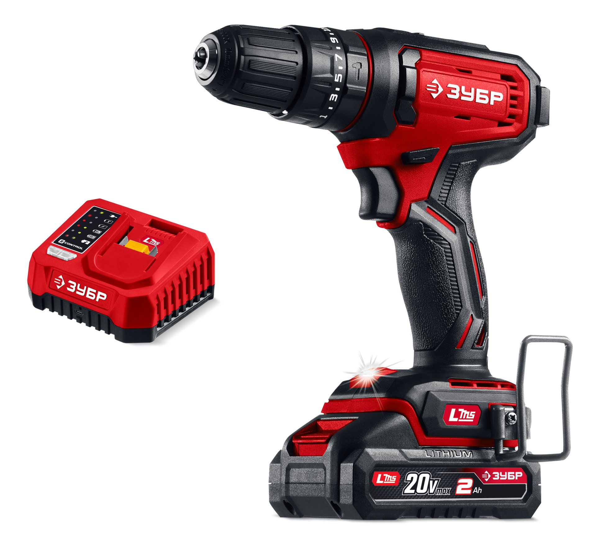 ЗУБР 20 В, 40 Н·м, 1 АКБ LMS (2 А·ч), ударная дрель-шуруповерт (ДШУ-40-21)