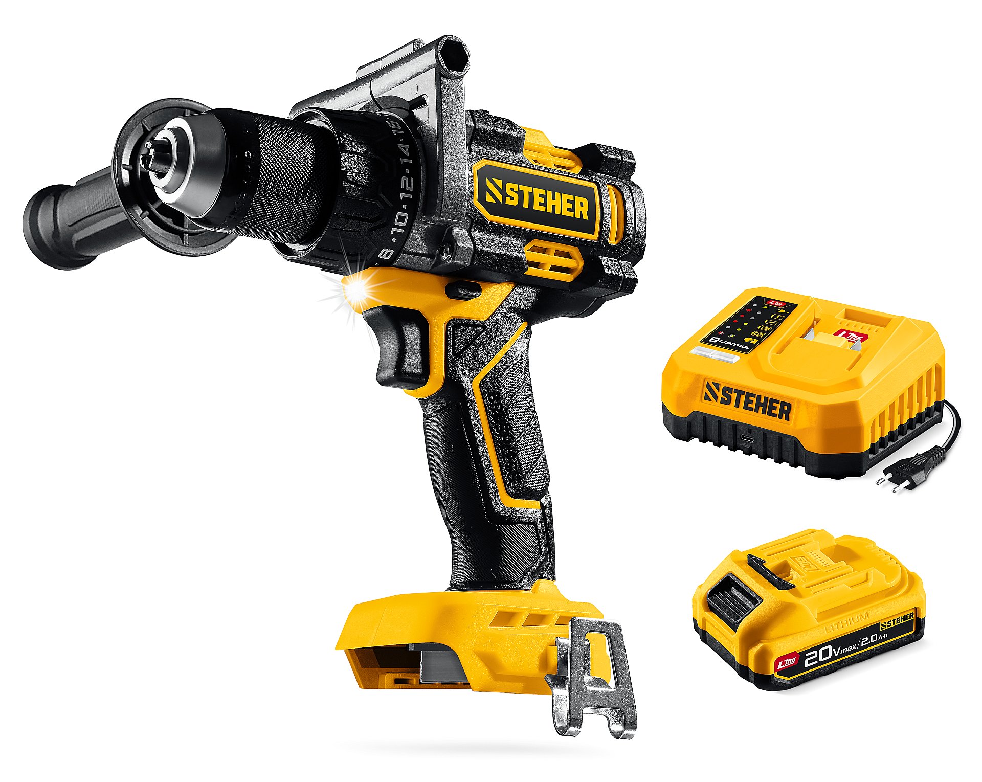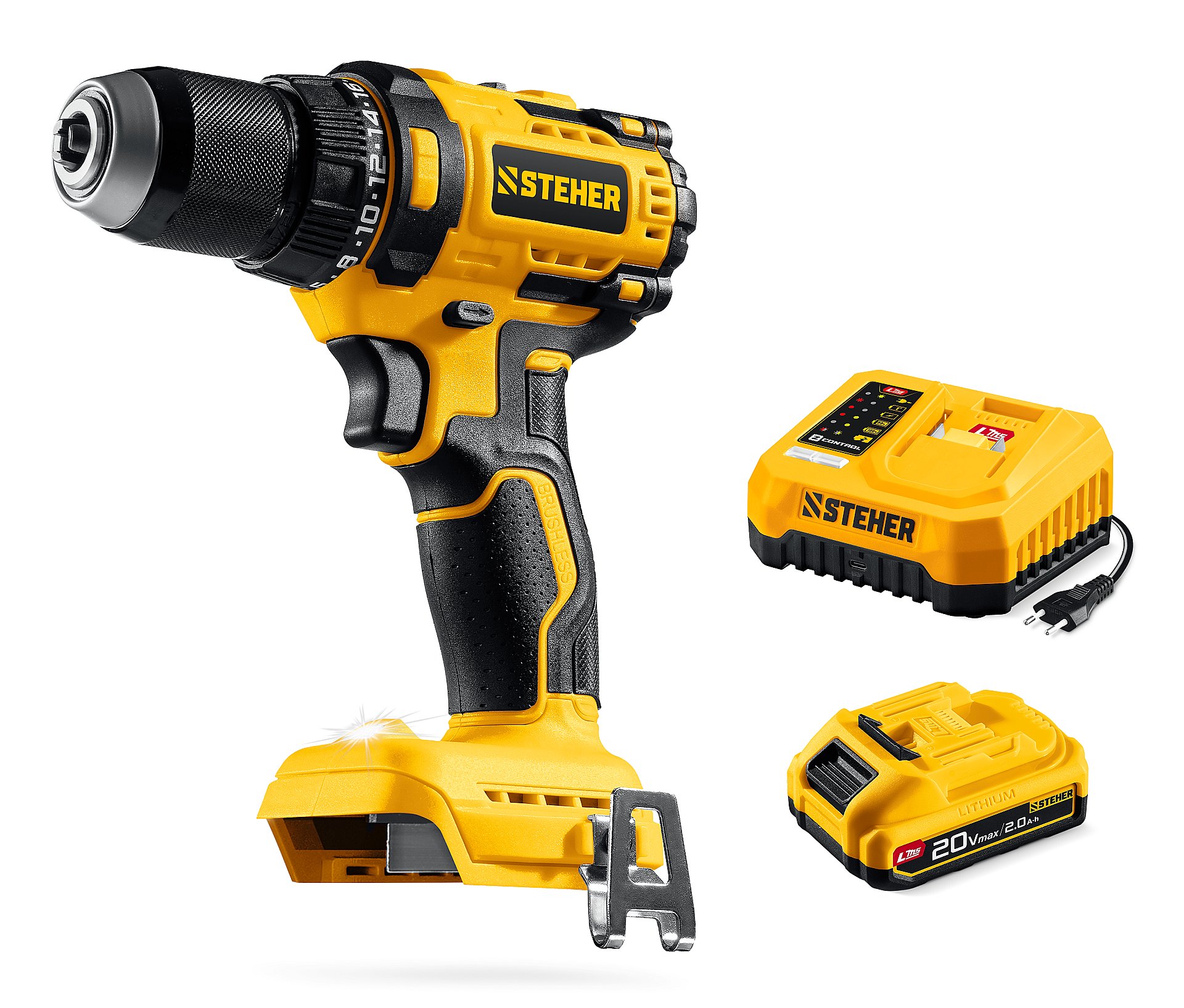STEHER 20 В, 165 Н·м, 1 АКБ LMS (2 А·ч), бесщеточная дрель-шуруповерт (CB-165-21)