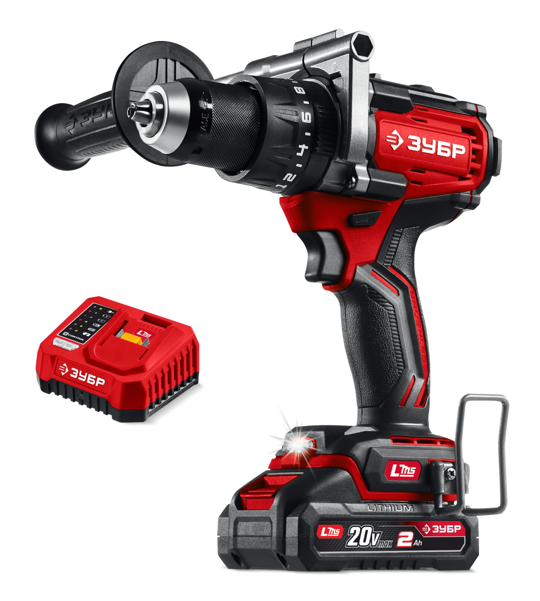 ЗУБР 20 В, 165 Н·м, 1 АКБ LMS (2 А·ч), бесщеточная ударная дрель-шуруповерт (ДБУ-165-21)