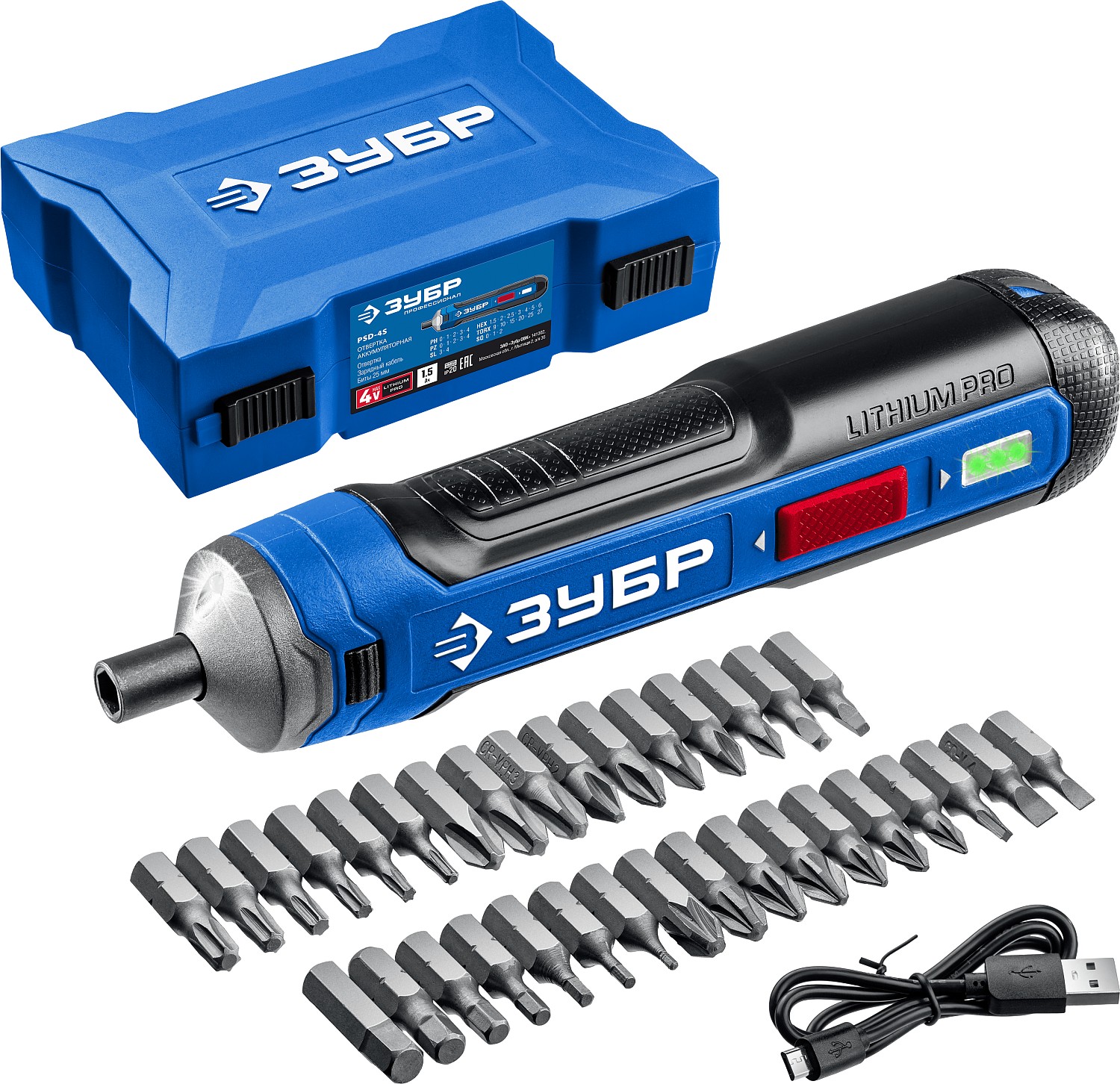 ЗУБР ZUBR GO 4 Vmax, аккумуляторная отвертка, кейс, 33 биты, Профессионал (PSD-4S)