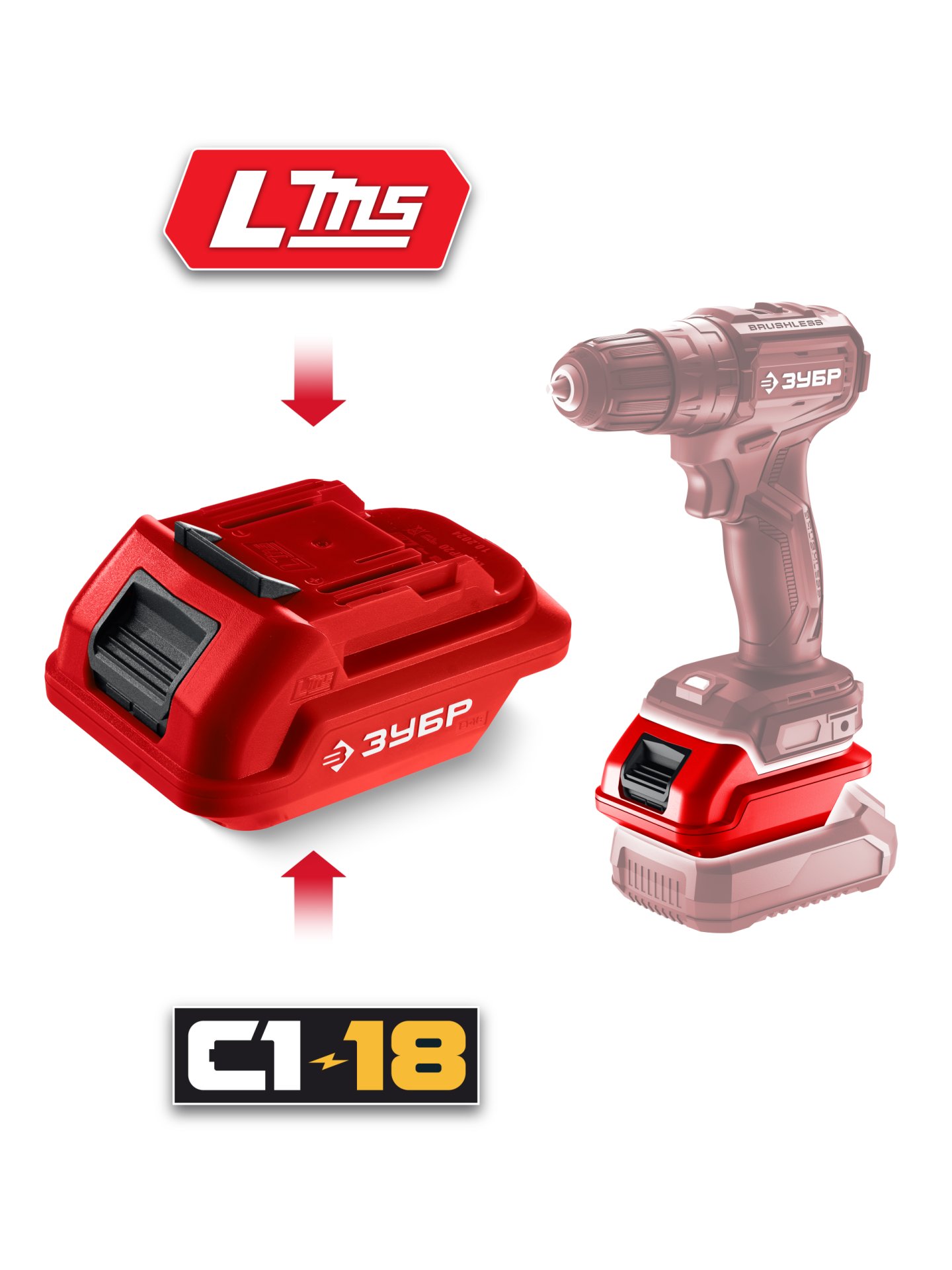 ЗУБР 18 В, адаптер для АКБ С1-18 под инструмент LMS, (С18-LMS)