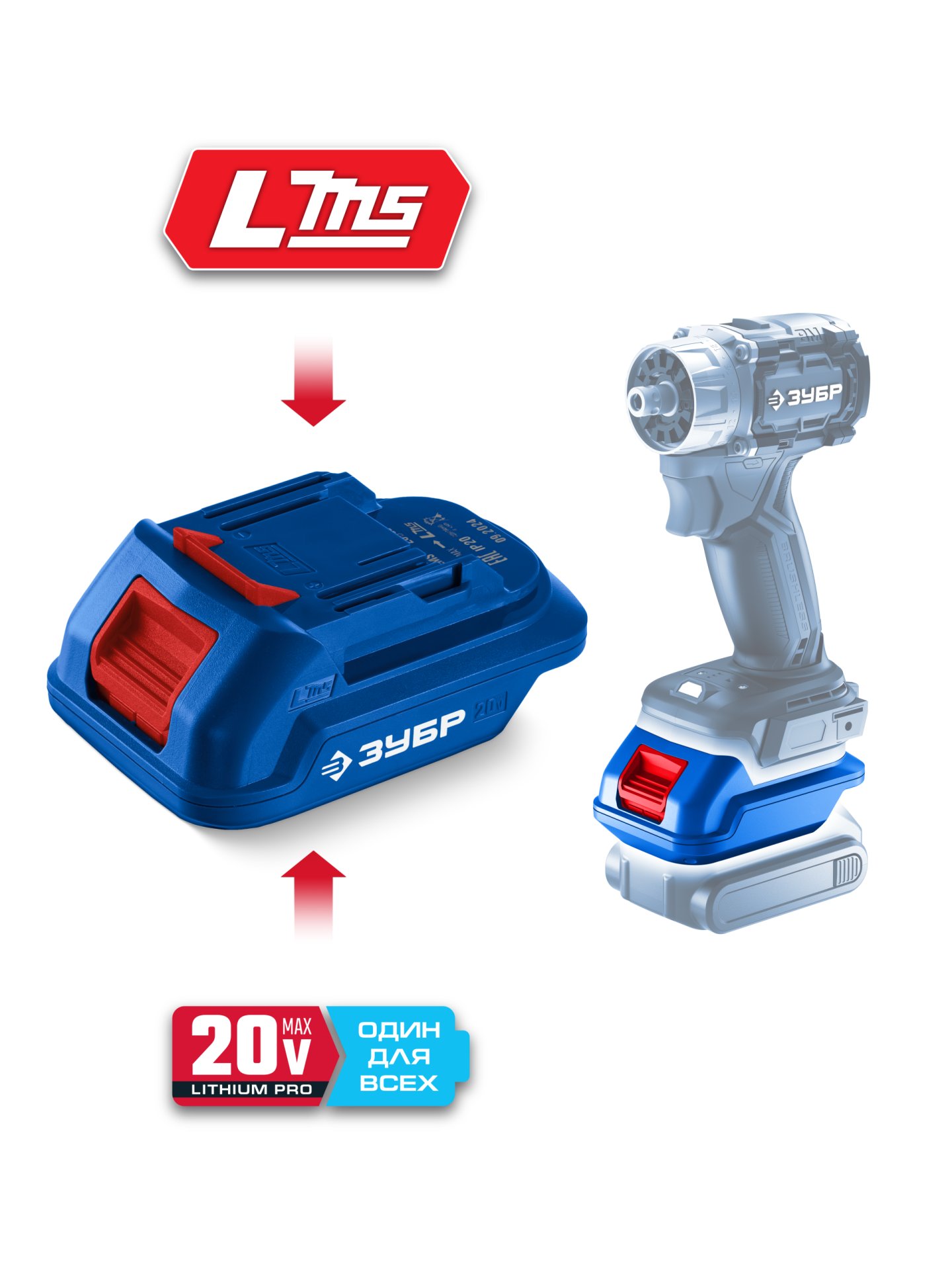 ЗУБР 20 В, адаптер для АКБ 20V Max под инструмент LMS, Профессионал (T7-LMS)