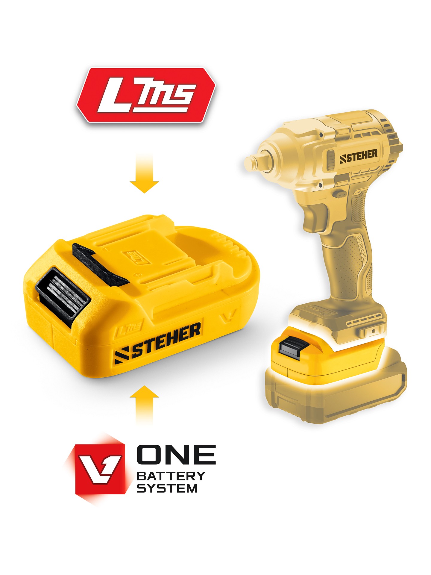 STEHER 20 В, адаптер для АКБ V1 под инструмент LMS, (V1-LMS)