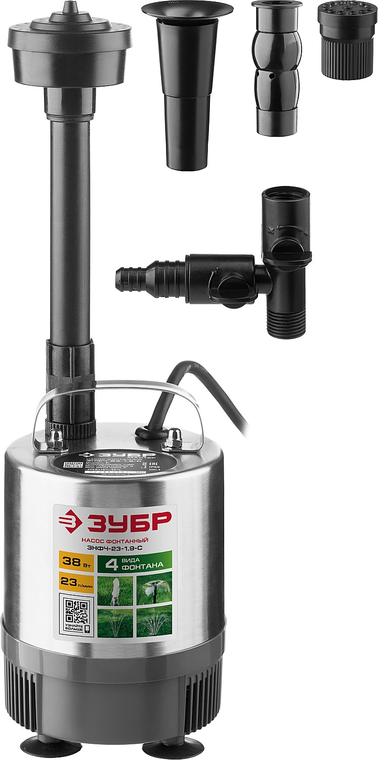 ЗУБР 38 Вт, фонтанный насос, корпус из нержавеющей стали (ЗНФЧ-23-1.9-С)