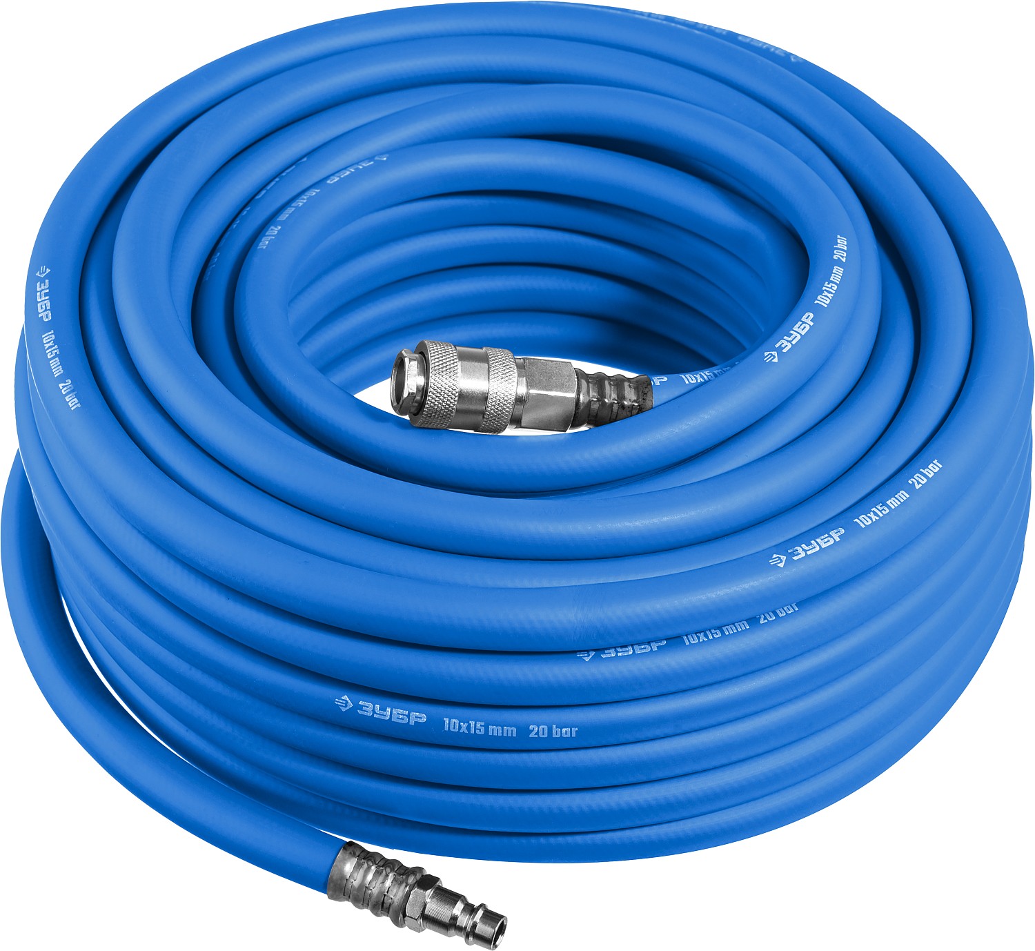 ЗУБР 20 м, 10 х 15 мм, 20 бар, воздушный шланг с фитингами рапид, Профессионал (6481-20)