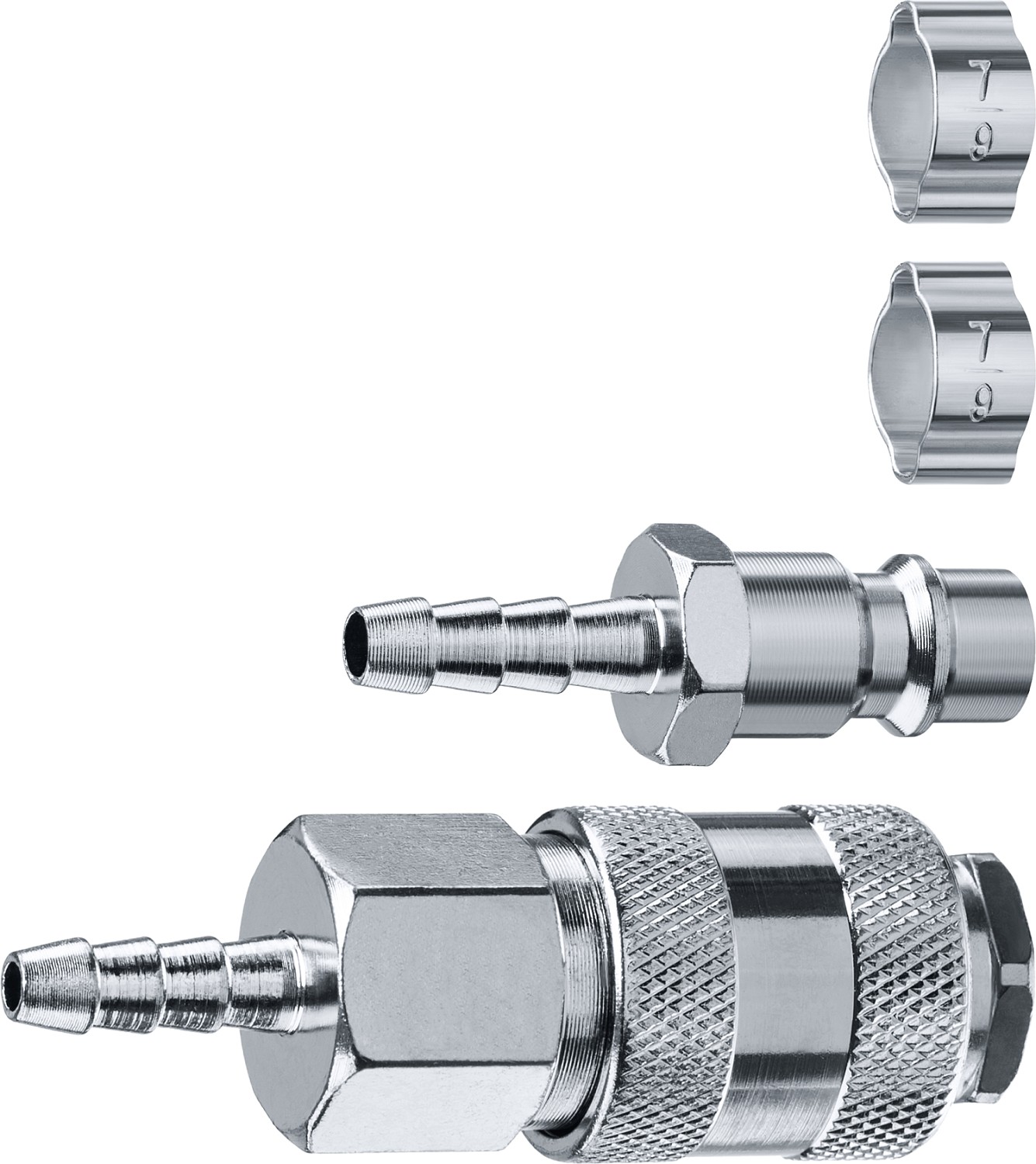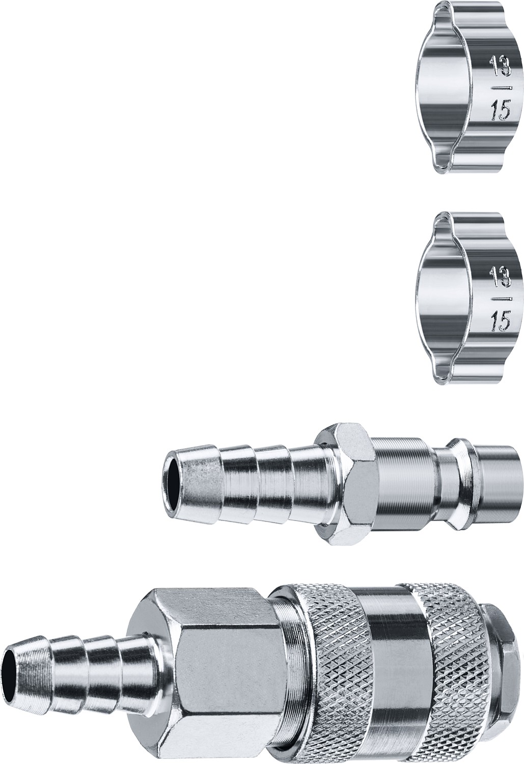 ЗУБР (штуцер ″елочка″, 8 мм - рапид муфта) + (рапид штуцер-штуцер ″елочка″, 8 мм) + (обжимные хомуты 2 шт), набор, Профессионал (64920-08-H)