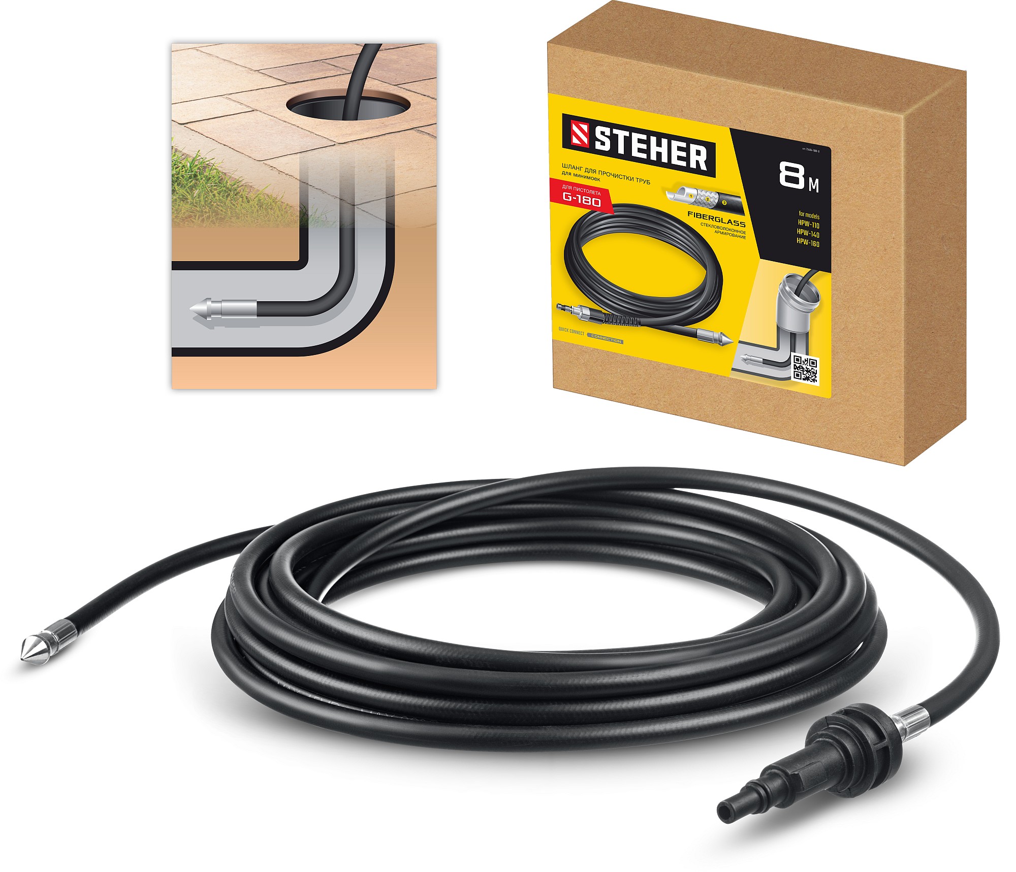 STEHER для пистолета G-180, 8 м, шланг для прочистки труб (75414-180-8)