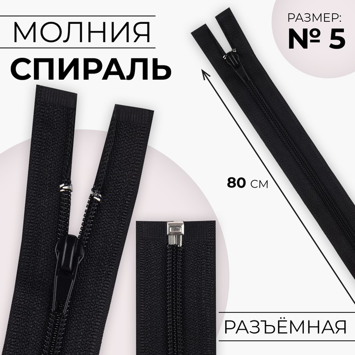 Молния «Спираль», №5, разъёмная, замок автомат, 80 см, чёрная
