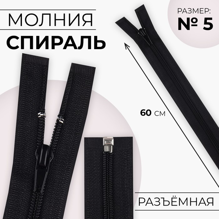 Молния «Спираль», №5, разъёмная, замок автомат, 60 см, чёрная