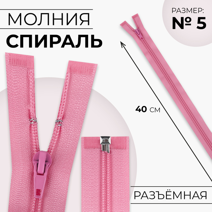 Молния «Спираль», №5, разъёмная, замок автомат, 40 см, розовая