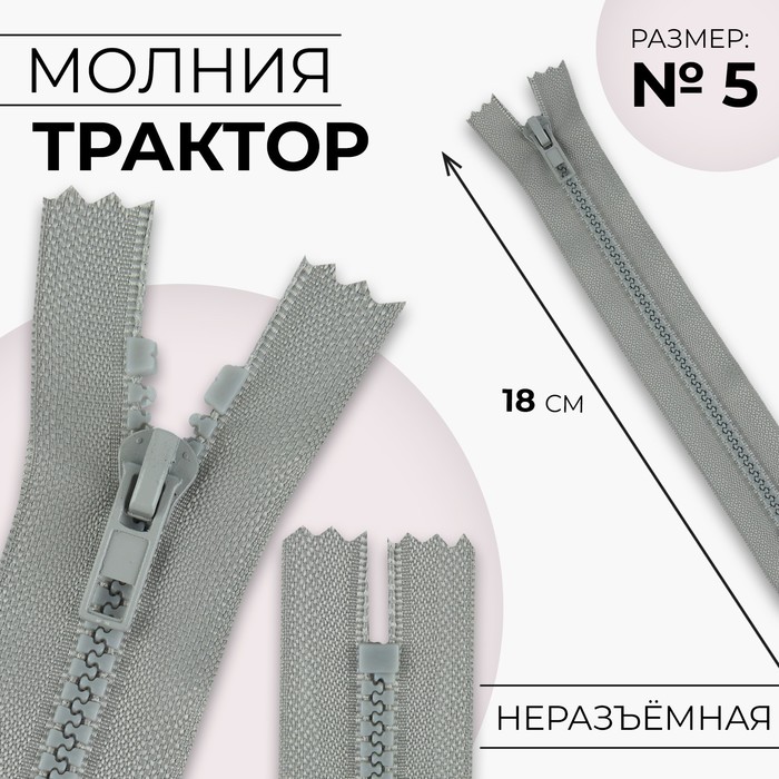 Молния «Трактор», №5, неразъёмная, замок автомат, 18 см, светло-серая