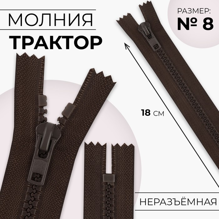 Молния «Трактор», №8, неразъёмная, замок автомат, 18 см, коричневая