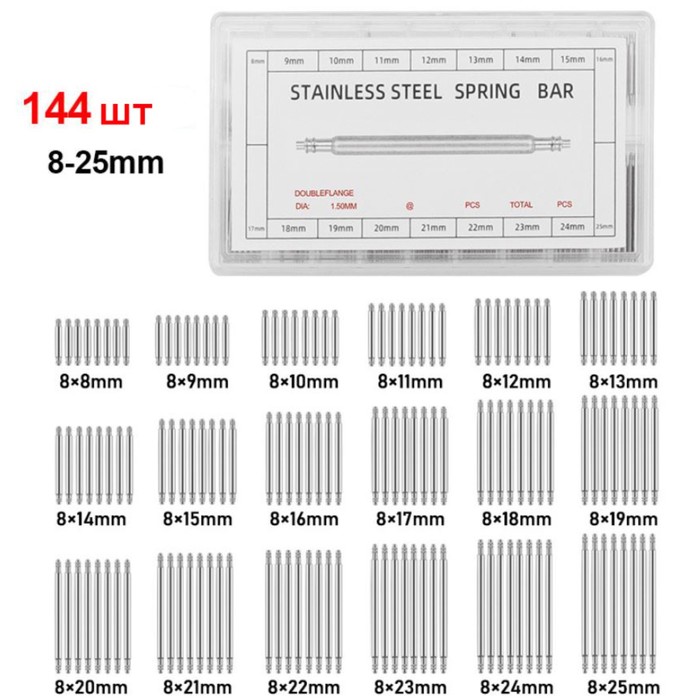 Шпильки для наручных часов, от 8 до 25 мм, набор